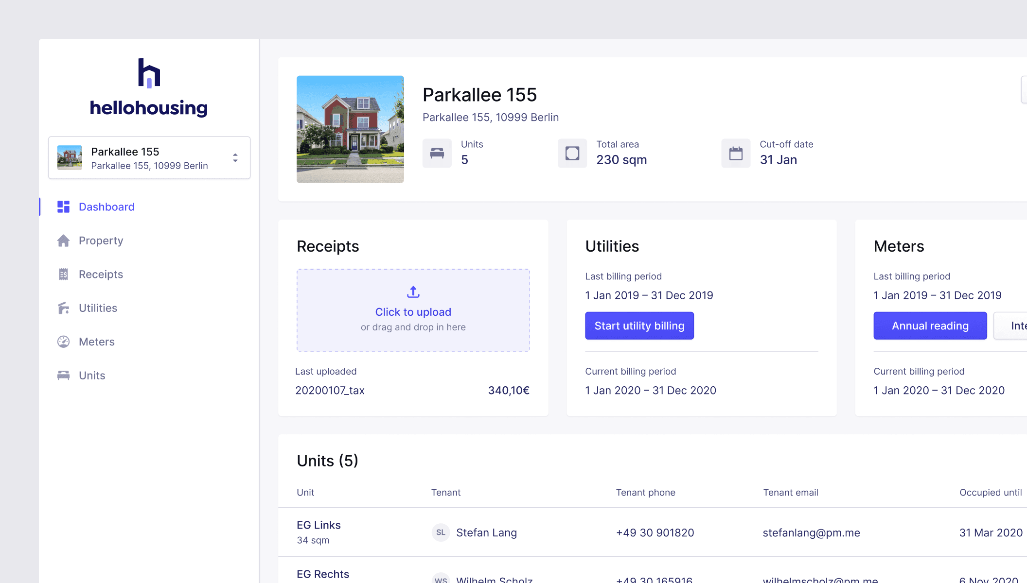 Say "tschüss!" to chaotic spreadsheets and unencrypted notes. With Hellohousing, everything about your properties and tenants lives in a single place. It sounds basic, but it's already such a relief for landlords.